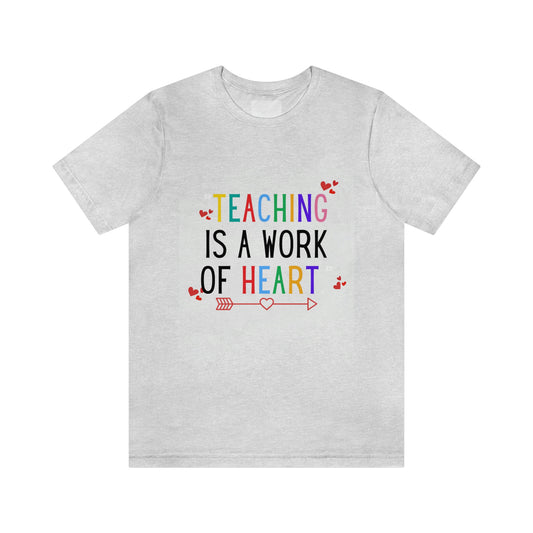 "Teaching is a Work of Heart" Unisex Jersey Short Sleeve Tee Simple Design